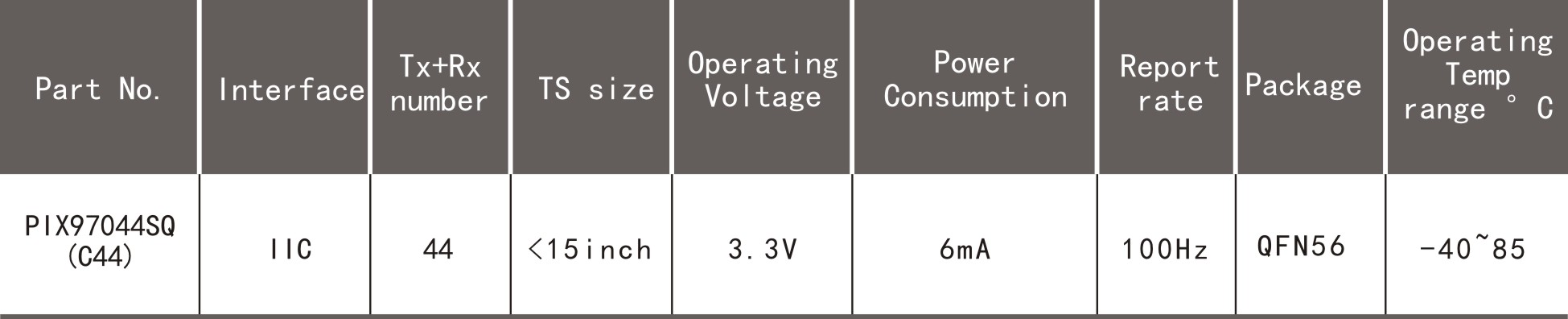 Tango C44 is a configurable touchscreen controller combining the proven Pixcir sensing proprietary technology and a powerful 32-bit RISC MCU.