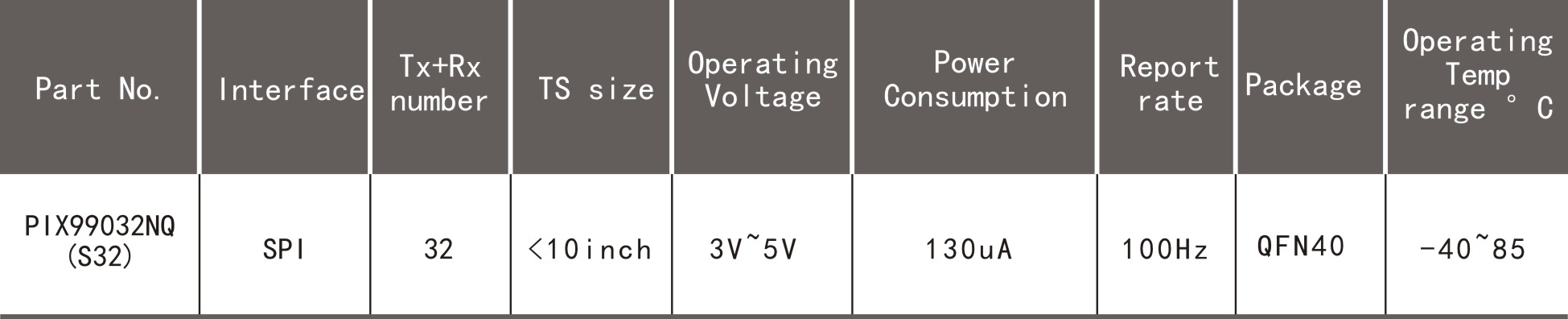 Its special capabilities make the system insensitive to environmental conditions such as temperature, humidity and also other variations. The chip adapts itself to large series resistance of long lines, especially seen when using ITO technology. The device has very low power consumption. The clock is derived from the SPI interface and when the chip is not selected; the current is typically 100 nA.
