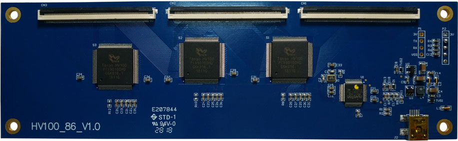 适用于大屏的HV100芯片,功耗低、抗干扰能力强,可以多指触摸、手套触摸、用笔触写等。可用于智能家电、商用、工控、教育、车载等领域。3+1多颗级联已经应用于86吋大屏。