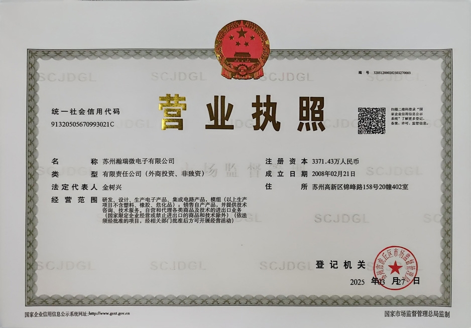 苏州瀚瑞微电子有限公司近期又传来重大喜讯!2025年3月27日,经过所有股东的通力协作以及法院、市场监督管理局的大力支持,苏州瀚瑞顺利完成了工商变更登记,备案了新的章程、管理层成员、董事会及股东会决议,公司的zui高权力机构已变更为股东大会。