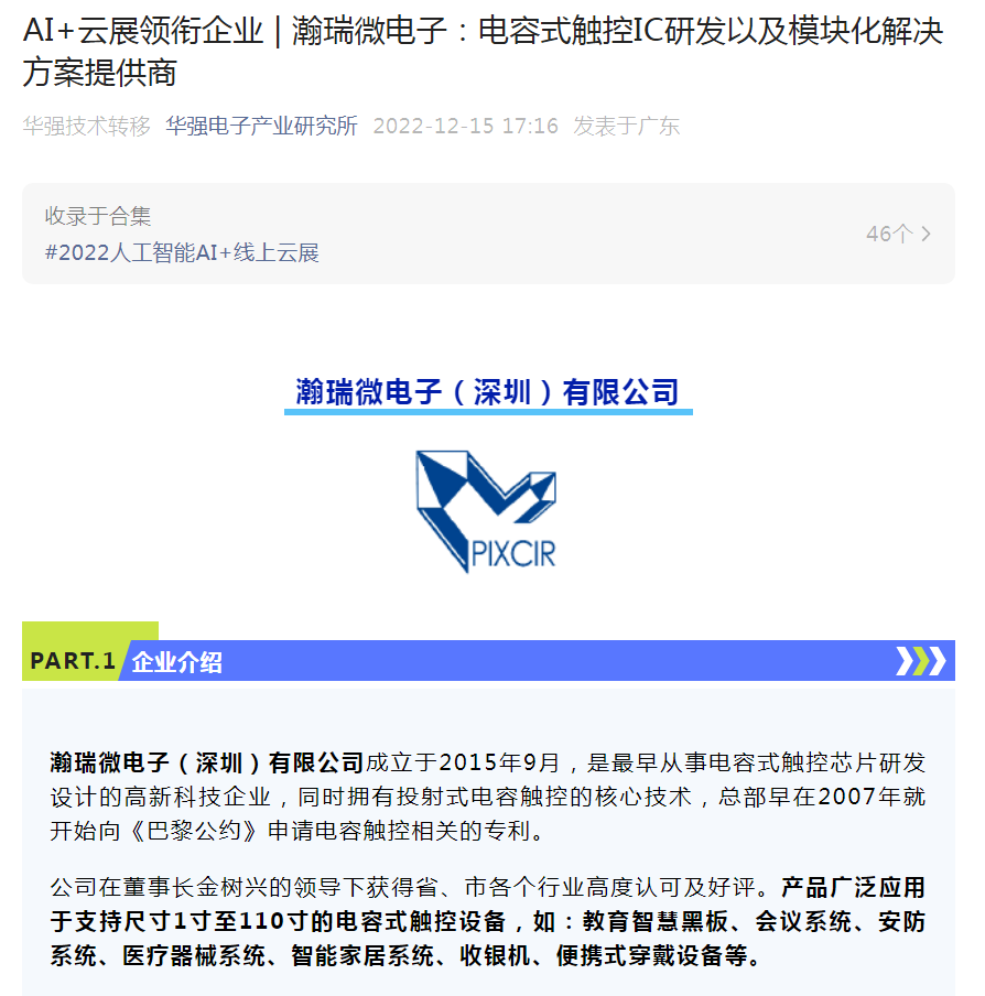 在本次云展中,苏州瀚瑞微电子有限公司作为AI+云展领衔企业,也积极参与到活动中来,展示了自己不凡的品牌实力和产品价值,受到了业内的广泛关注和赞誉。